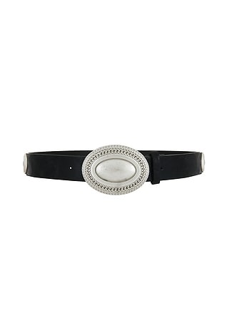 - Faux leather belt with silver-tone hardware throughout
